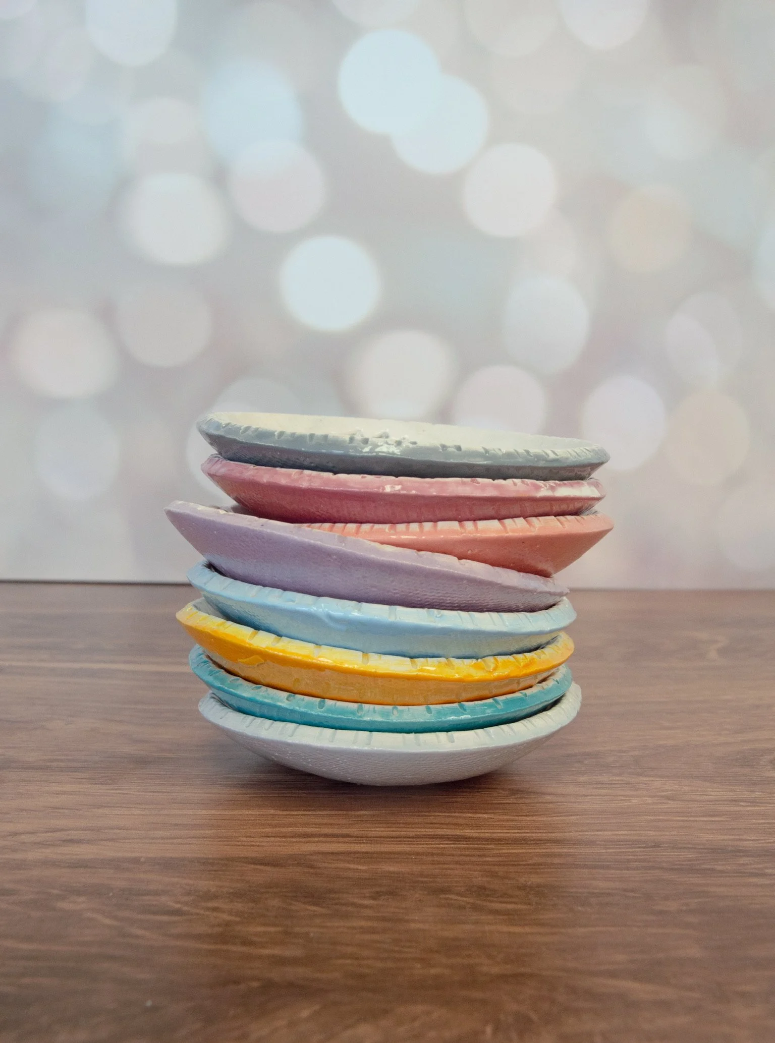 Measuring approximately 4 inches in diameter, they fit perfectly on dressers, nightstands, or entryway tables. Each dish is sealed for protection, allowing you to clean it easily without worry. Embrace the charm of handmade craftsmanship with our trinket/ring dish, where functionality meets artistry.